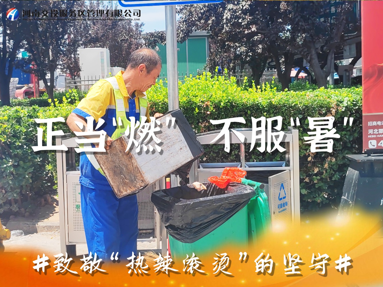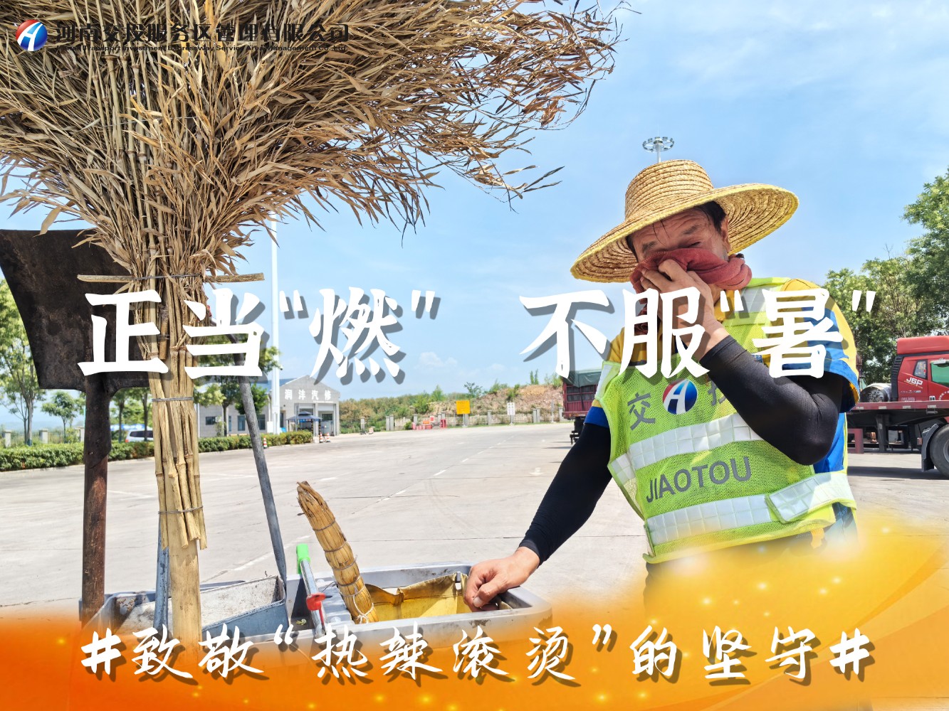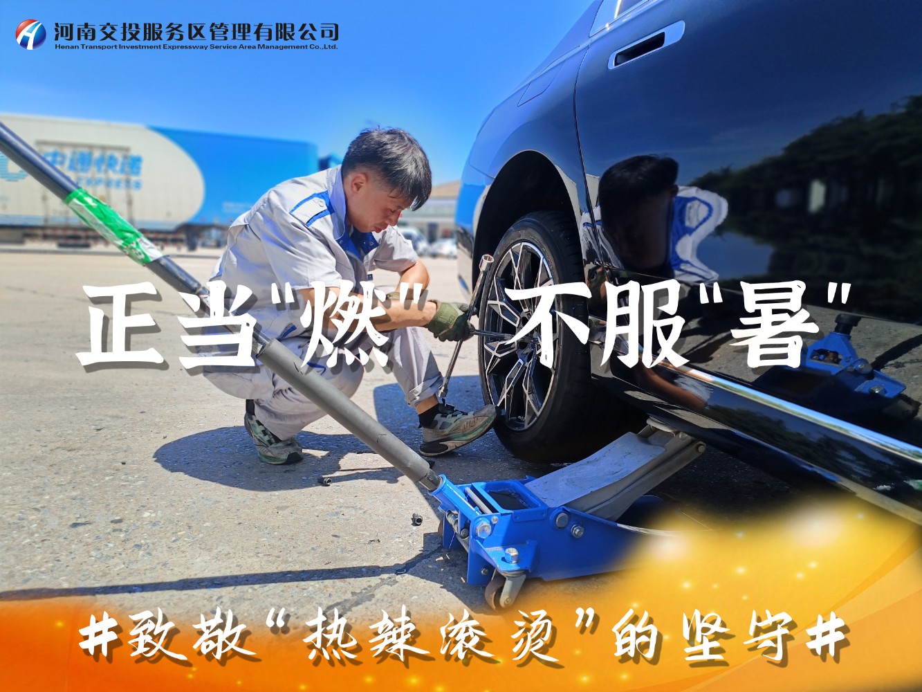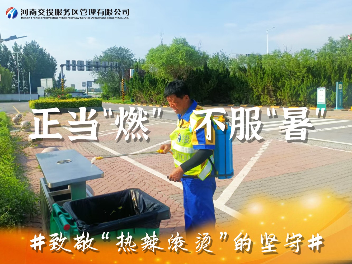 近日,滾滾熱浪席卷著中原大地,我省持續出現38℃以上高溫極端天氣,地表溫度直逼50℃,在這樣惡劣的環境下,一場時間與高溫的較量正在公司服務區上演,服務區廣大一線員工用汗水詮釋著服務初心,用行動書寫責任與擔當,以實際行動為司乘人員平安健康出行保駕護航。